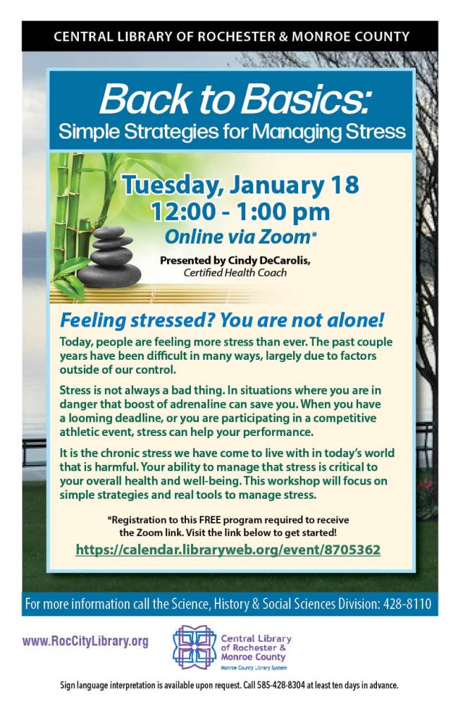 This 60-minute workshop will focus on simple strategies and real tools to manage stress.